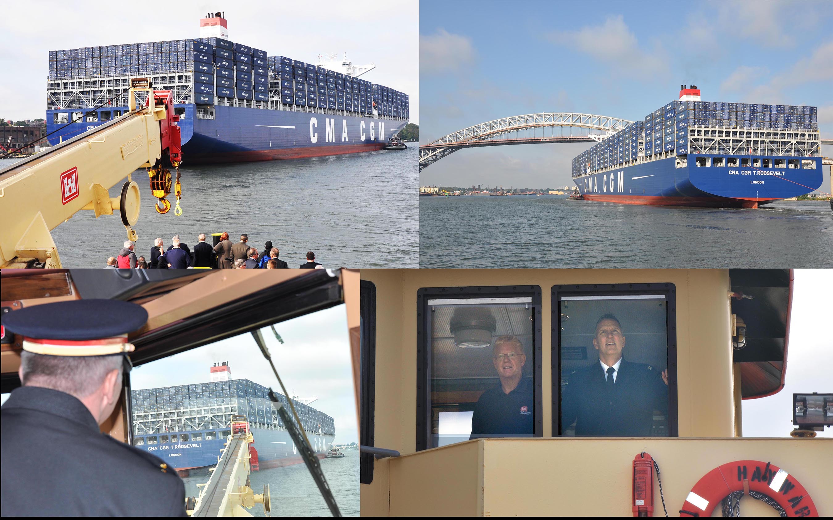 On September 7, 2017, the U.S. Army Corps of Engineers, New York District participated in a symbolic ribbon-cutting ceremony to commemorate the transit of the Container Ship CMA CGM Theodore Roosevelt and the newly raised Bayonne Bridge. The Roosevelt is the largest-capacity container ship to enter the Port of New York & New Jersey.